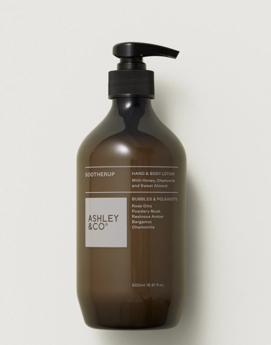 Sootherup Hand & Body Lotion – Indulge your skin in luxurious softness. This rich, velvety lotion combines the soothing power of honey, chamomile, and sweet almond to melt away dryness, leaving your skin nourished without any greasy residue. Perfect for daily use, it envelops you in the playful, elegant scent of Bubbles & Polkadots: a delicate dance of garden rose, powdery musk, and warm amber. Smooth, pamper, and refresh—your skin’s new everyday companion, beautifully paired with Washup.