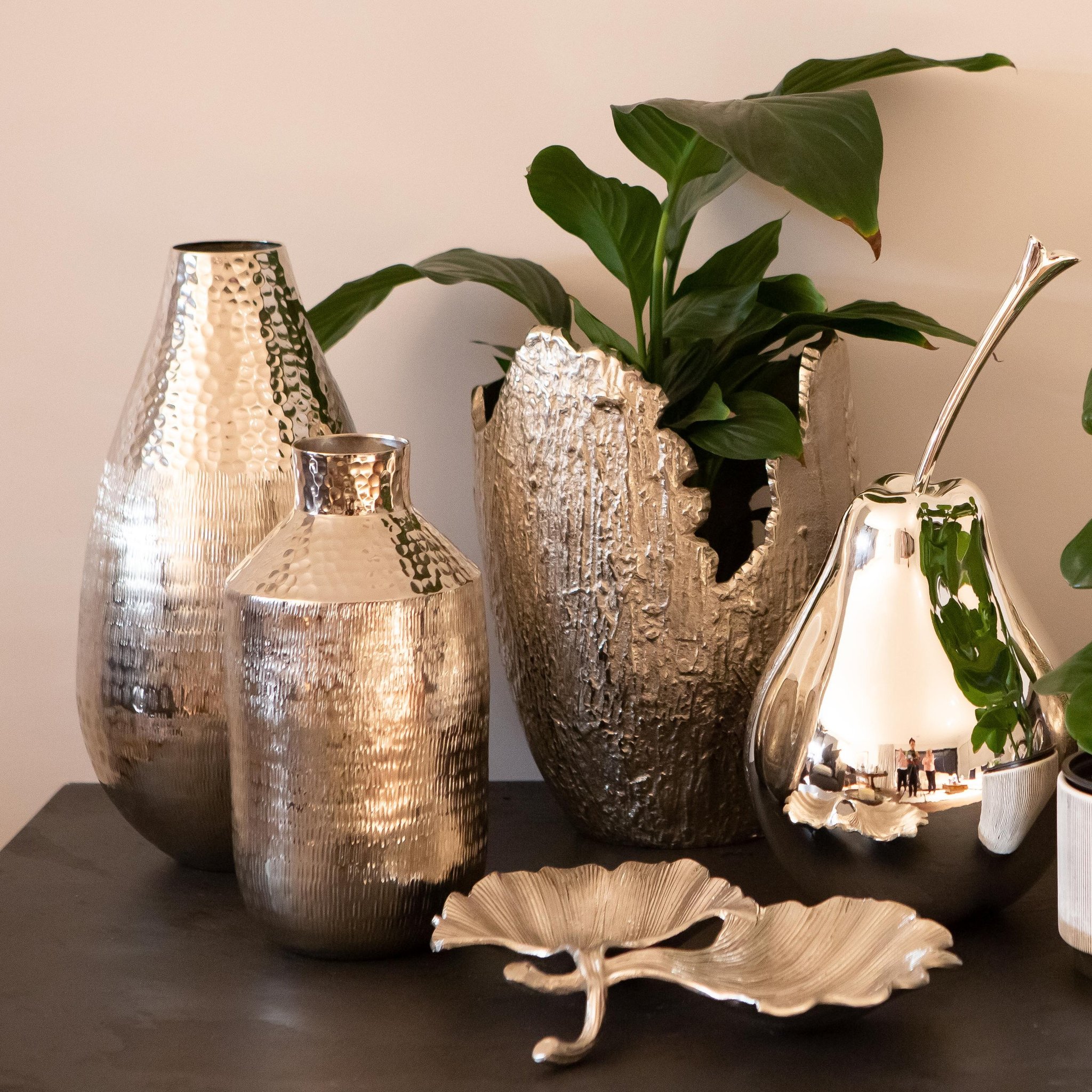 Simple, contemporary vases celebrate the timeless allure of pure metal. Group together for a sculptural display or fill with dry botanicals or faux flowers.