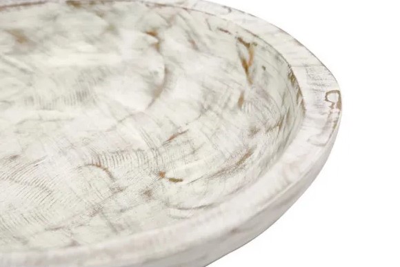 White wash round teak decorative bowl.